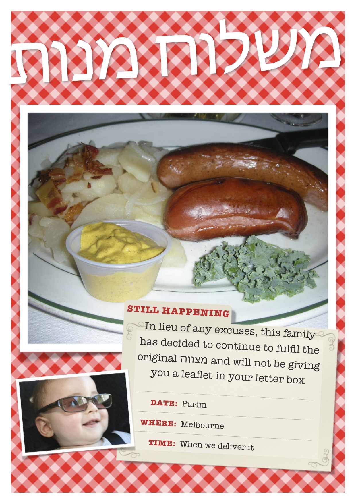 I’ve always wanted to do something like this in real life, but my wife has vetoed it on each occasion. Probably a good idea too. So, a virtual מחאה is presented below.