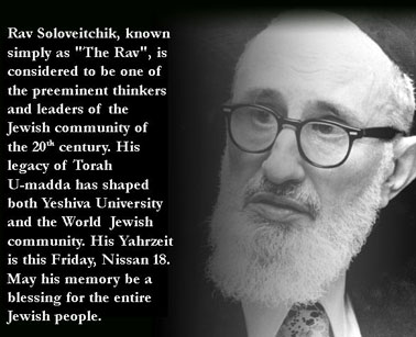 I received the following loose transcript of an oral shiur given by the Rav on the 31st March 1999. It isn’t clear when the Rav actually delivered this shiur.